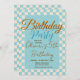 Custom Pastel Blue Checkered Birthday Party Inbjudningar