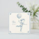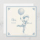 Cute announcement card featuring a pencil drawing of a little boy in a sailor suit floating under a balloon in the style of Delft ceramic tiles. The text is fully personalizable. Perfect as a birth announcement.