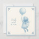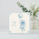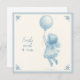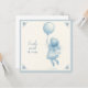 Cute square card featuring a pencil drawing of a little girl in a frilly dress floating under a balloon in the style of Delft ceramic tiles. The text is fully personalizable. Perfect new baby annoucement card!
