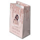 A gift bag for a girly and glamorous 21st (or any age) birthday. A faux rose gold background with an elegant faux rose gold glitter drips, paint drip look. The text: The name is written in dark rose gold with a modern hand lettered style script. Tempate for a date and age 21. Personalize and add your own photo of the birthday girl.