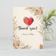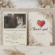 Express gratitude with this earthy, romantic design featuring a warm neutral palette, dried botanical accents, and an elegant layout for your portrait.This formal stationery design utilizes a balanced layout centered around a rectangular portrait frame, bordered by asymmetrical arrangements of dried fan palm leaves, eucalyptus, and pampas grass. The colorway relies on warm tones of rust , sage green , and sand beige, complemented by an elegant contrast between flowing hand-lettered calligraphy and classic serif typography. The composition features subtle shadow depth to create visual hierarchy. This is a flat printed image with a printed paper grain and faux watercolor effect, not actual raised material.