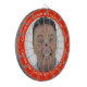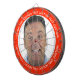 Custom Photo Dartboard template with personalized text and RED FF2600 round photo framing surround (other color surrounds available in store). Your face on a dartboard. One click personalize upper and lower text plus replace image, or full customization via Edit Screen. Regulation size with metal frame and 6 brass darts (Stars and Stripes + Union Jack flights). A fun gift for a darts player.