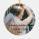 Celebrate your first Christmas as a married couple with this beautiful, customizable photo ornament! Perfect for newlyweds, this keepsake will capture the joy of your wedding and the start of your journey together. Personalize it with your favorite wedding photo and add a special date to make it truly unique. Whether it's for your own tree or as a thoughtful gift, this ornament is a timeless reminder of your love and commitment. Cherish your memories year after year with this one-of-a-kind keepsake.