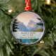 Commemorate a special event or gift a meaningful keepsake with this customizable ornament. Featuring a beautiful mountain and lake landscape, this ornament allows you to add names, date, and location in a stylish font overlay. Perfect as a wedding memento, holiday decoration, or gift, it captures the serenity of nature and the warmth of personal details, making it a cherished addition to any collection.