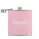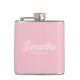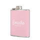 A pink and white personalized wedding flask perfect for bridesmaid gifts, bridesmaid proposal gifts, Bachelorette Part gifts and bridal shower decor. Customize the tumbler to your name and title and create a unique wedding party gift.