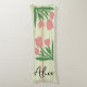 Adorable graphic artwork in sage green background, featuring stripes and pink flowers in retro style for girls.