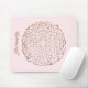 Personalized funny crochet lace doily look, retro stylish elegant feminine monochrome pastel pink mouse pad with a name or monogram in beautiful script calligraphy handwritten font. Muted neutral tones with gradient ombre rose gold, powder blush pink in organic abstract floral inspired doily crochet motif. PLEASE NOTE that the textile aspect is only printed. Cool illustration of an original ornamental crochet macrame piece handmade handcrafted by my mom a very long time ago when it was very popular in our homes decor in Europe. Retro vintage nostalgia vibes in a modern cool style interpretation, called now the grand millennial trend. Grandma's inspiration for millennials. Unique original premium look tech accessory to protect your mouse, or a custom thoughtful gift for her. Girly, pretty, anesthetic fashionable design for a custom tech accessory gift under 15 dollars for her. Appreciated by handmade crochet enthusiasts, delicate lace charm. Elevate the home office or even professional workspace with this artsy design piece on your desk.