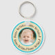 Custom Round Birthday Photo Beige & Turquoise Nyckelring