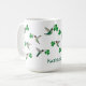 Cute mug with hand-painted ruby-throated hummingbirds carrying shamrocks. Just add your name!