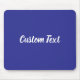 This blue mouse pad has text in white script. The text can be edited to show a custom message or deleted