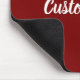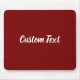 This deep red mouse pad has text in white script. The text can be edited to show a custom message or deleted