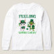 Celebrate St. Patrick’s Day with double the charm! This adorable green t-shirt features a whimsical illustration of a kawaii bunny and a cheerful frog dressed in their finest leprechaun attire, complete with top hats and shamrock drinks. Featuring the playful text "Feeling Extra Lucky," this shirt is perfect for parades, pub crawls, or holiday parties.