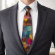 This tie features a vibrant abstract geometric pattern in rich jewel tones—teal, mustard, rust, and deep plum—overlaid with subtle plaid-style lines for depth and texture. The bold yet wearable colorblock composition gives a modern art-inspired vibe that works for creative professionals, art lovers, or anyone who wants to add a pop of sophisticated style to a suit or casual outfit.