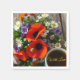 A bouquet of wild flowers with red poppies, white daisies and cup of coffee. "With Love" - this text can be replaced with any other, or simply deleted. The design of the napkin is suitable for any holiday - for a birthday, anniversary, Valentine's day, Father's Day or any other occasion.