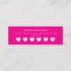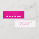 A vibrant hot pink loyalty card designed to keep spa and salon clients coming back. Clean, modern layout with customizable business name and reward offer (like “15% off after 5 visits”). Perfect for beauty studios, nail salons, eyelash artists, and wellness businesses looking to build repeat visits with a bold, on-brand touch.