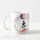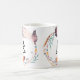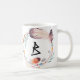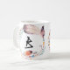 Customisable mugg för Boho Monogramkaffe. ©Radenbrea studior på Zazzle. Denna mugg har en befjädrad och prydd med pärlor kran i bohostilen med en monograminsida det. Du kan skräddarsy den, genom att ändra brev, (märka med sina initialer) och att tillfoga ett namn eller ett annat initialt. Det är upp till dig.