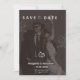 A stylish option for modern couples, this customizable chic black Save the Date invitation features elegant calligraphy paired with refined serif and modern sans fonts. The photo background on the front creates instant visual impact, while the back design includes a customizable monogram, photo, and event details, adding a refined and sophisticated finishing touch.