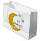Make your Eid gifts extra special with this elegant white gift bag from the Modern Minimalist Line Art Eid Collection. Featuring a gold crescent moon and delicate gray stars, the design is fully customizable, including the phrase "Eid Mubarak." Perfect for presenting Eid al Fitr or Eid al Adha gifts, this gift bag adds a festive, thoughtful touch and complements your Eid party supplies. Ideal for family, friends, or colleagues, making every Eid gift memorable and beautifully presented.
