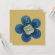 Make a breathtaking statement with this elegant gold floral wedding invitation. Featuring a trendy flower-shaped die-cut silhouette set against a shimmering metallic gold background, this design offers a bold yet sophisticated look. The deep royal blue petals create a high-contrast aesthetic, while the creative layout utilizes each petal to display essential event details, including the names of the couple, the ceremony time, and the reception information at The Nesting Place.