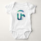 Cheerful and protective, our Letter U baby bodysuit features a vibrant rainbow umbrella sheltering beneath glowing Northern Lights. The umbrella's colorful panels mirror the aurora borealis hues, creating a joyful celebration of protection, comfort, and wonder. This watercolor design captures playful resilience and the promise that even in life's storms, there is beauty overhead—perfect for families who find joy in every season, celebrate protective love, and treasure the shelter they provide their little one.