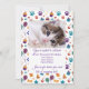 Celebrate your furry friend's special day with this adorable and fully customizable birthday invitation! Featuring a playful border of colorful paw prints, party hats, cupcakes, and balloons, this card perfectly captures the joy of a pet celebration. You can easily upload a photo of your pet to the center and personalize all the party details, making it a unique keepsake for your guests.