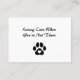 Ensure your pet sitting business stands out with this charming and professional customizable business card. Designed for animal lovers, this card features adorable illustrations of a dog and cat, alongside a unique paw print photo placeholder to showcase your personal touch. The clean layout clearly lists your services—including dog walking, cat sitting, and home visits—making it easy for pet owners to see exactly how you can help. The back of the card features a heartwarming slogan and a paw print with a heart, reinforcing your commitment to providing "Loving Care When You’re Not There.