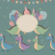 Celebrate your child's fifth birthday with this cheerful dinosaur-themed invitation! It features a cute cartoon design of a pink dinosaur and a green dinosaur with a dark blue background and vibrant colors. The design is fully customizable to suit your child's name, age, and party details. Perfect for children's parties looking for a fun and unique touch.