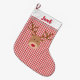 Option to add a name to this cute Christmas stocking with a checked background with Rudolph head on the front.