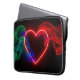 A bright red heart on a black background, with red, green and blue smoke, covers the front of this attention grabbing laptop bag.