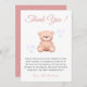 Cut Cartoon Teddy Bear, cute handdrawn hearts school watercolor Pastel Girl Baby Shower Flat Thank You Card.