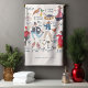 Bekväma klassiska barn 12 dagar av julillustration som målats av Caroline Bonne Müller och som har en förälder i ett päron träd, två turturduvor, 3 franskar höns, 4 uppringande fåglar, 5 golden ringar, 6 gäss, 6 gäss, 7 svanar simning, 8 jungfrulig mjölkning, 9 dam-dans, 10 lordleaping, 11 piper och 12 trummor. Juldekoration för barnens daghem eller för ditt hus i vardagsrummet eller köket. Med ett rött bakhåll med samma mönster som dansen dam.