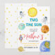 Den ärade rymden hade en andra födelsedagsinbjudan med ett sött sol, planeter, raketer, astronaut. Perfekt för att fira din lilla 2:a födelsedag med färglöst kosmisk party tema.