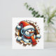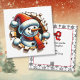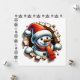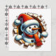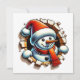 Julkort för nostalgisk personlig. Cute snögubbe kommer genom ett hål i väggen med julhatt och röd sjal. Tillbaka har ett ställe där du kan anpassa din Julhälsningar och lägga till namn.