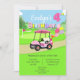 Fira en speciell liten flickas fjärde födelsedag med den här charmerande golftematiska inbjudan! Den här fina designen är fylld med lekfull rosa-poka-prick-golfvagn parkerad bredvid en grönt. Den är full med lekfull information och en festive födelsedagskalas och ett gäng lysande heliumballonger, inklusive ett stort nummer 1-ballong. Perfekt för en golfälskande familj eller ett unikt fjärde födelsedagstema, den här inbjudan anger tonen för en roligt-fylld dag på och av grönten.