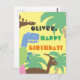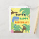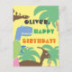 Anpassa det här barnen med namn eller din text. En färgstark jurrasismpark med tyrannosaurus rex, stegosaurus, parasaurolophus med handflatan träd som illustrationskort är en underbar gåva till små barn som kärlek dinosaurier och jurrasic Park. Personligens dinosaurifödelsedagskort för småbarn. Personligens dinosaurifödelsedagskort för förskolebarn. Personligens dinosaurifödelsedagskort för pojkar.