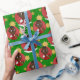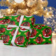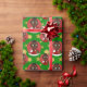 Papper julomslutning med en illustration av ett sött, leende afrikanskt baby som håller ett Julklapp, i en röd cirkel på en grönt med stjärnor, en helgdagar för jul med en redigerbar textmall för ditt namn eller meddelande