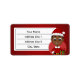 Etiketter med en illustration av en söt, leende afrikansk pojke med svart hår från kort, pojken bär en Jultomten-dräkt med röd hatt och håller en present. I en röd cirkel på röd helgdagar, en juldesign med en redigerbar textmall för ditt namn och adress