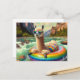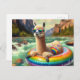 Cute Alpaca på ett regnbåge Färg Flyter Vykort