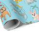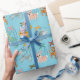Den här söta inslagningen pappra har en mönster av söta marionettdockor mot en ljusblå bakgrund. Det finns en kattmarionett, en hund marionett, en getmarionett, en fågelmarionett, en kaninmarionett och en elefantmarionett.