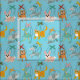 Den här söta väven har en mönster av söta marionettdockor mot en ljusblå bakgrund. Det finns en kattmarionett, en hund marionett, en getmarionett, en fågelmarionett, en kaninmarionett och en elefantmarionett.