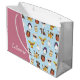 Bort med din lilla flickas gåvor med den här anpassningsbarnas presentväska med hennes namn och söta djur i solglasögon! Djuren befinner sig i mönster framför polka dots och omfattar en tiger, hund, lamm, uggla, giraffe, penguin, hamster och kyckling. Det skulle också vara en bra presentsäck för en liten pojke som kärlek djur!