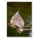 En underbar anka som simmar längs vatten när den matar på väg höger mot oss. Ett underbart ögonblick i en lokal anka-damm, som fångas på en kamera av en vanlig men enastående naturarena.