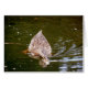 En underbar anka som simmar längs vatten när den matar på väg höger mot oss. Ett underbart ögonblick i en lokal anka-damm, som fångas på en kamera av en vanlig men enastående naturarena.