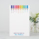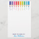 Vackra färgpennor som lämnar en söt färglös bläckfisk som strömmas över sidan i söt regnbåge i färg för att dekorera överdelen av denna personlig stillastående papper för en grundskola eller konstlärare. Anpassa med ditt namn eller annan text grund i anteckningsblocket i lila och blått.
