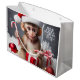 Bilden visar en söt apa med en röd julhatt, som sitter mitt i ett artificiellt snöslandskap. Den festliga ambitionen stärks ytterligare av att det finns två presentlådor och ett par polkagrisar på platsen. Apan håller två polkagrisar i händer och skapar en lekfull och glatt vibe.