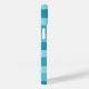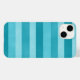 En modern och söt iPhone 14 fodral med en rand mönster i skuggor av turkos, teal, aqua och mynta grönt.
