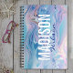 Cute aqua rosa girly marbling monogram anteckningsbok