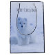 julklapp med ett foto av en vit arktisk räv. Ett vintersnöslandskap omger denna vackra varelse.