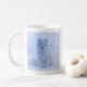 Ett mugg med ett foto av en vit arktisk räv. Ett vintersnöslandskap omger denna vackra varelse.