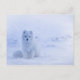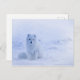 Ett vykort med ett foto av en vit arktisk räv. Ett vintersnöslandskap omger denna vackra varelse.